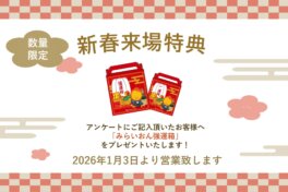 ※誠に勝手ではございますが、12/23(火)~1/3(土)の期間、年末年始休業とさせていただきます。ご予約の受付可否につきましても、この期間ご返答できませんのでご了承ください。