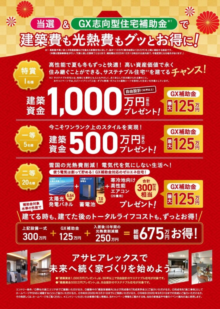 アサヒアレックスグループは、創業44周年の感謝を込めて、これからの家づくりを応援する「1,000万円キャンペーン」を開催します。