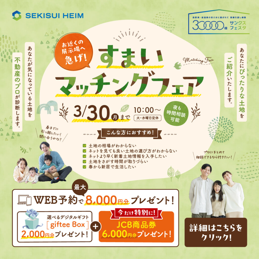 【セキスイハイム】【最大8,000円分のギフト券プレゼント】『すまいマッチングフェア×ホワイトデーフェア』開催!