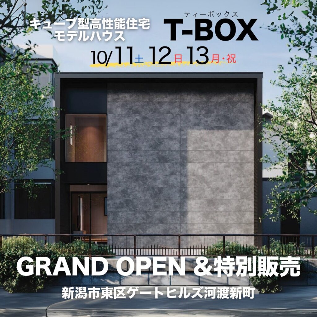 いよいよ残り1区画となった分譲地に、洗練されたキューブ型デザインの高気密・高断熱住宅「T-BOX」が、モデルハウスとして誕生!