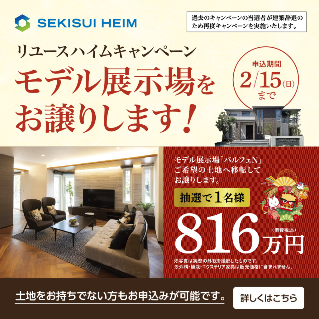 過去のキャンペーンの当選者が建築辞退のため再度キャンペーンを実施いたします。